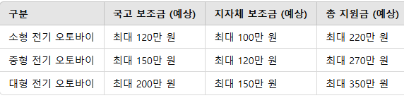 1. ✅ 2025년 전기오토바이 보조금 금액