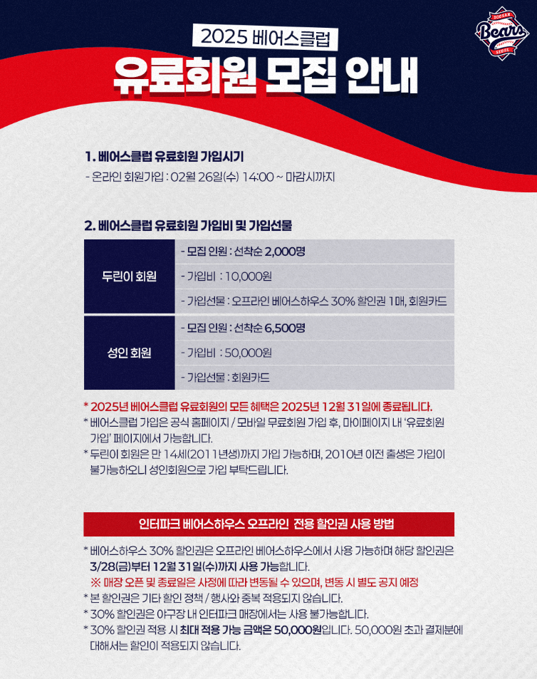 두산베어스 홈 개막전 포스터두산베어스 유료회원 가입방법 리스트 이미지